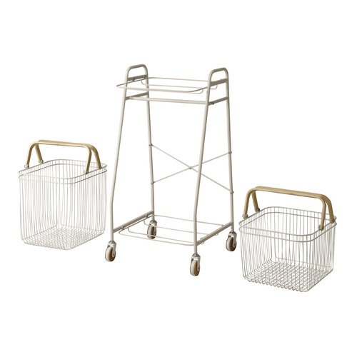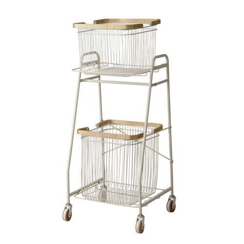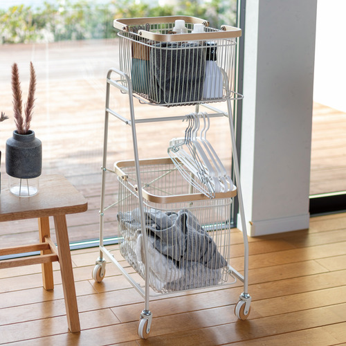 ●大きさの異なるバスケット棚が使いやすいワゴン。