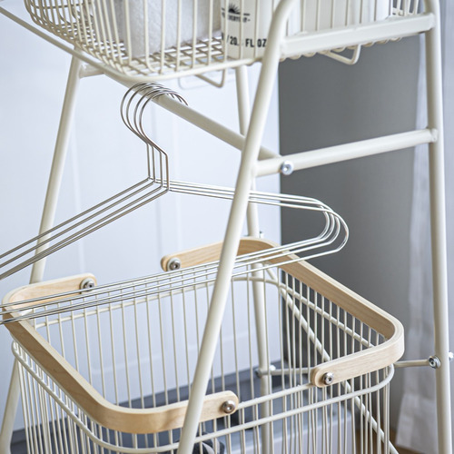 上段のカゴ下のバーは、物干し前のハンガーの仮置き場としても活用できます。