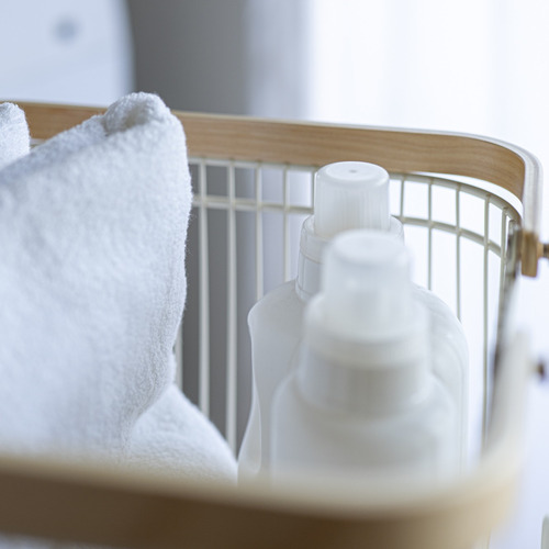 狭いスペースでも扱いやすく、取手付きのカゴは持ち運び可能なので、よく使ものをカゴごと移動できます。
