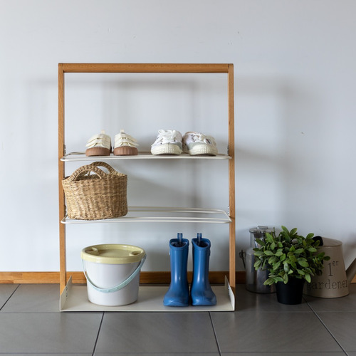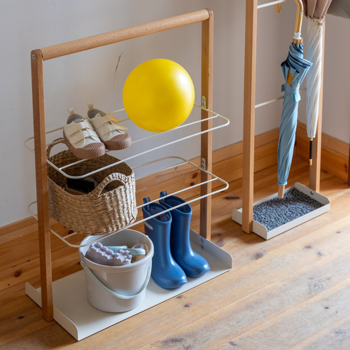 靴を置く段は上の2段がワイヤー仕様になっており、風通しがいいため湿気もたまりにくく普段使いの靴の収納場所にピッタリ。奥が見通せるワイヤー仕様のため、靴を置いてなくても圧迫感を与えません。