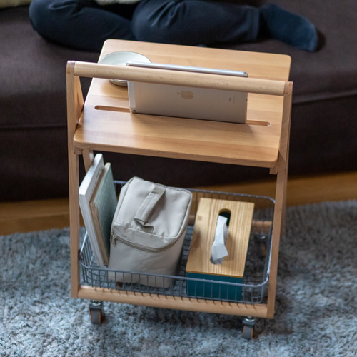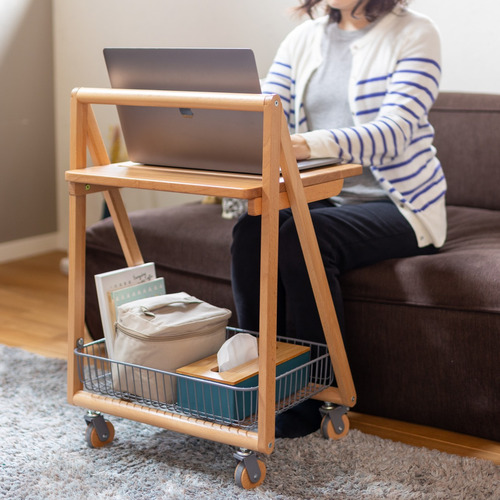 ●ソファ前でのちょっとしたパソコン作業や書き物などに使いやすいテーブルワゴン。