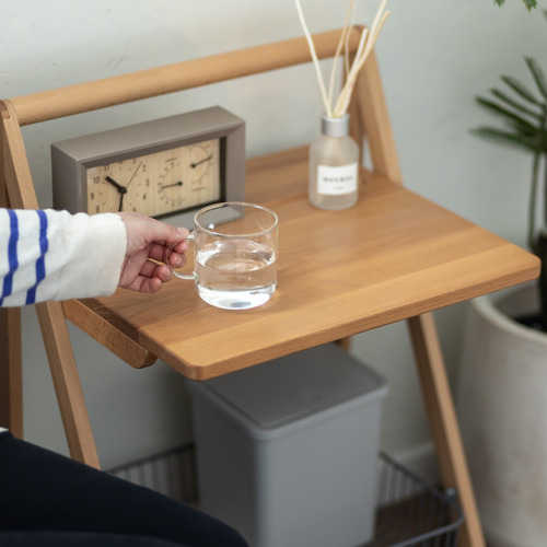 コンパクトサイズでありながらも、天板下の収納カゴやキャスターが付き、ソファやベット横のナイトテーブルとしても便利です。