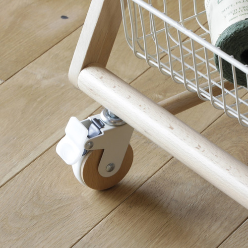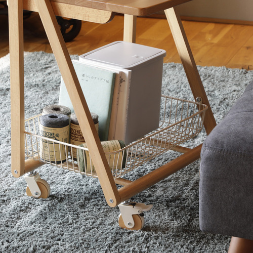 コンパクトサイズでありながらも、天板下の収納カゴやキャスターが付き、ソファやベット横のナイトテーブルとしても便利です。