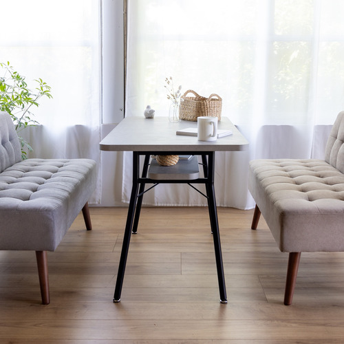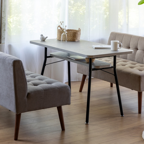傷に強い天板と収納力をプラスした天板下の棚は、日常でのちょっとした使いやすさが備わっています。また、天板角は丸みをもたせていますので、小さなお子様がいるご家庭でも安心です。