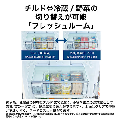●チルド←→冷蔵/野菜の切り替えが可能「フレッシュルーム」