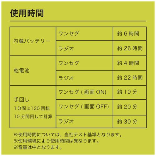 充電池・乾電池・手回しの3つの発電方式から選んで本製品をご利用頂けます。
