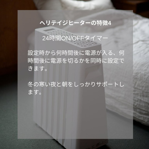 オイルを使わない事により立上り速度が2倍に。オイルヒーターの弱点であった立上りの遅さを解消。