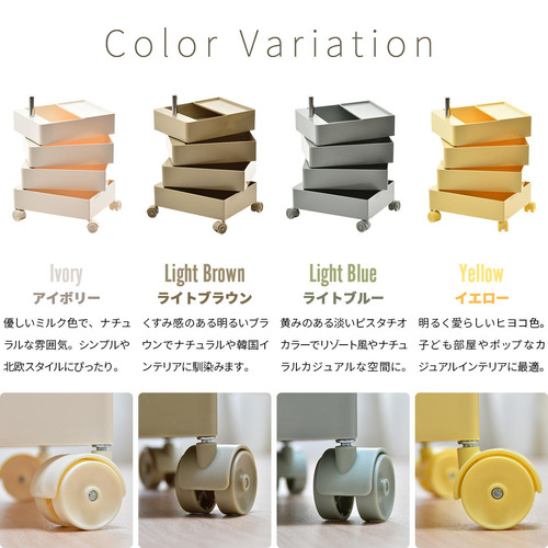 B.Bファニシング 360度回転ワゴン 4段 幅49.5×奥行39.5×高さ60cm 上部トレー付 イエロー RELS0336PLYLW