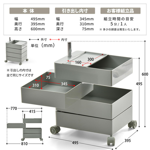 耐荷重:引出:5kg(1杯) トレイ:2kg=全体22kg
