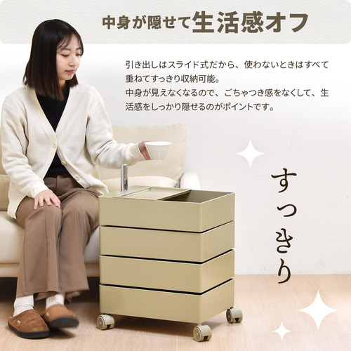本体と同色のキャスター付きで、リビングやキッチンなどどこにでも楽々運べます