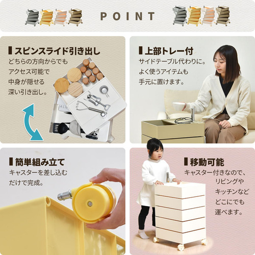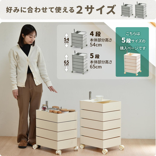 B.Bファニシング 360度回転ワゴン 5段 幅49.5×奥行39.5×高さ71cm 上部トレー付 アイボリー RELS0337PLIVR