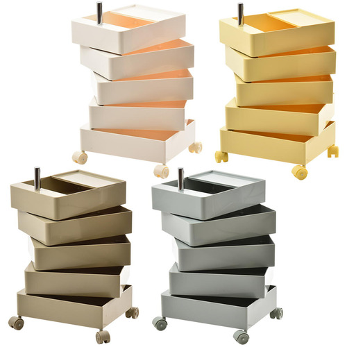 B.Bファニシング 360度回転ワゴン 5段 幅49.5×奥行39.5×高さ71cm 上部トレー付 ライトブラウン RELS0337PLLBR