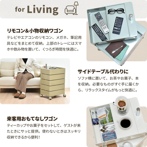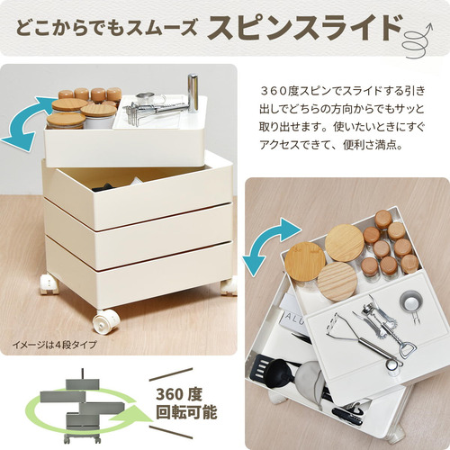 本体と同色のキャスター付きで、リビングやキッチンなどどこにでも楽々運べます