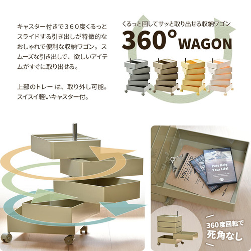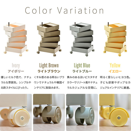 B.Bファニシング 360度回転ワゴン 5段 幅49.5×奥行39.5×高さ71cm 上部トレー付 ライトブルー RELS0337PLLBL