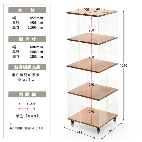 素材:【フレーム】アクリル4.5mm  【棚板】中質繊維板にメラミン貼り15mm