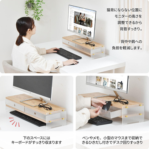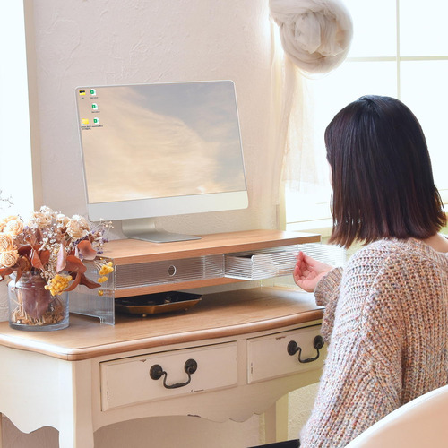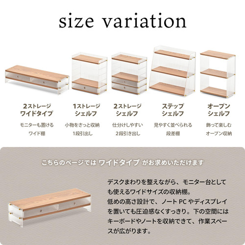 B.Bファニシング アクリル 収納棚 ワイドタイプ 幅62×奥行20.5×高さ13.5cm モニター台 ナチュラル ONLS0344PLNAT