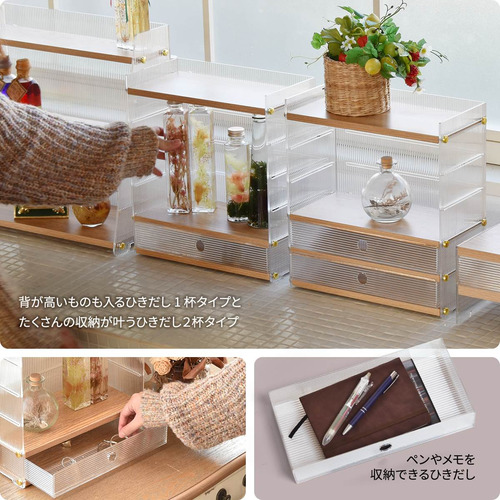 素材:【フレーム】アクリル4.5mm 【棚板】中質繊維板にメラミン貼り9mm