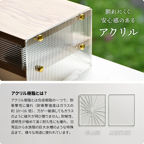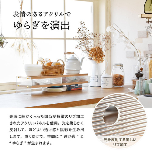 表面に細かく入った凹凸が特徴の、透け感のあるリブ加工のアクリルパネルを採用