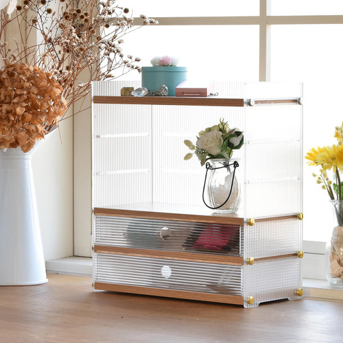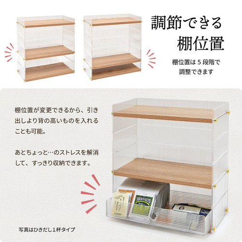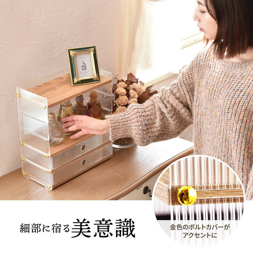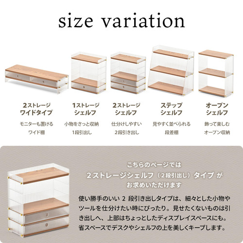 B.Bファニシング アクリル 引出し収納棚 2段 幅32×奥行15.5×高さ34cm シェルフ ナチュラル ONLS0346PLNAT