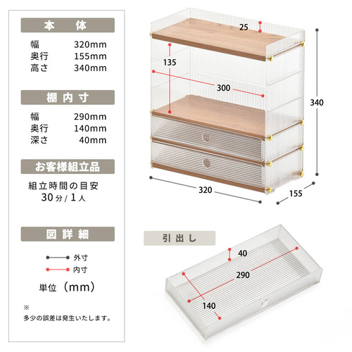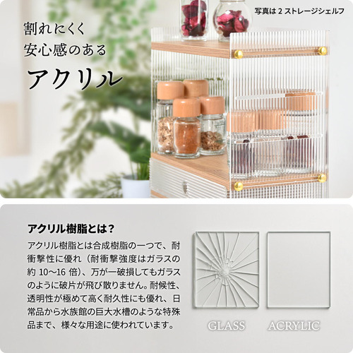 素材:【フレーム】アクリル4.5mm 【棚板】中質繊維板にメラミン貼り9mm