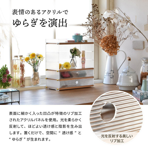 表面に細かく入った凹凸が特徴の、透け感のあるリブ加工のアクリルパネルを採用