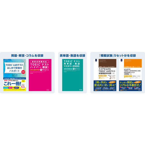 受験教材、資格検定教材を中心に発行する株式会社旺文社のTOEIC(R) テスト対策書5冊分を収録。