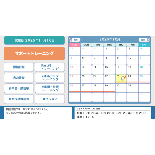 あなたに合った1週間の学習プランを提案する「サポートトレーニング」を搭載。