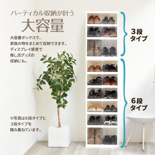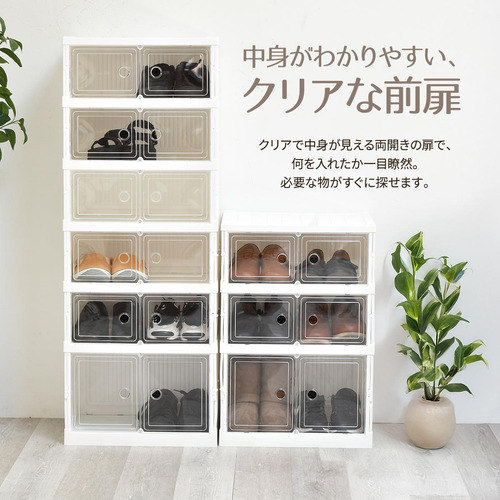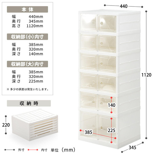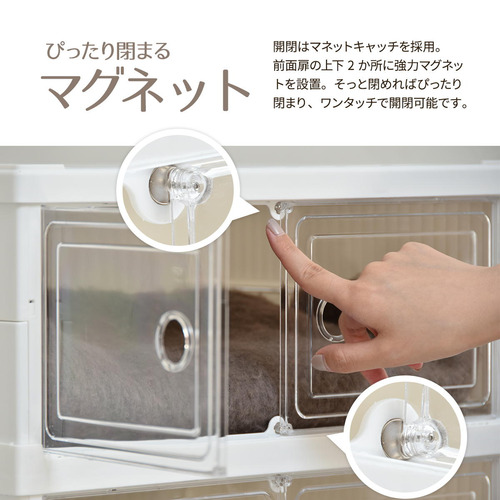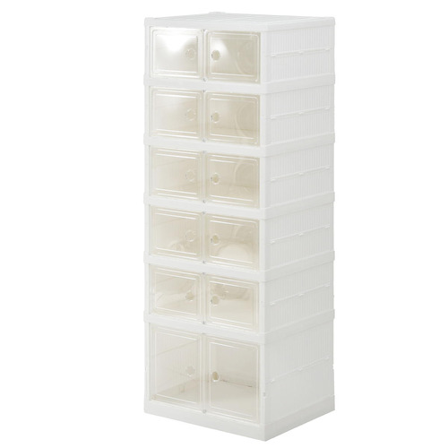 B.Bファニシング 折りたたみ多目的収納ボックス 6段 BENRY 幅44×奥行34.5×高さ112cm 前面クリア扉 ホワイト ONLS0359PLWHT