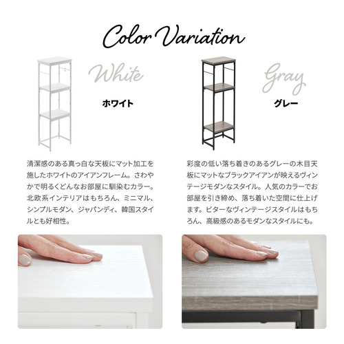 清潔感のあるホワイト、落ち着きのあるグレーの2色よりお選びいただけます。