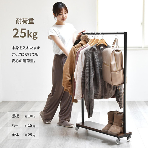 耐荷重:棚板:約10kg ハンガーバー:15kg=全体約25kg