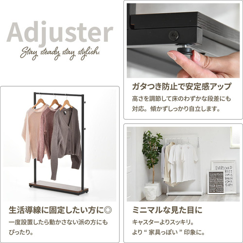 しっかりガタつかず見た目もスッキリ、アジャスター派。移動で模様替えや掃除もスムーズ、キャスター派。お好みで選べます。