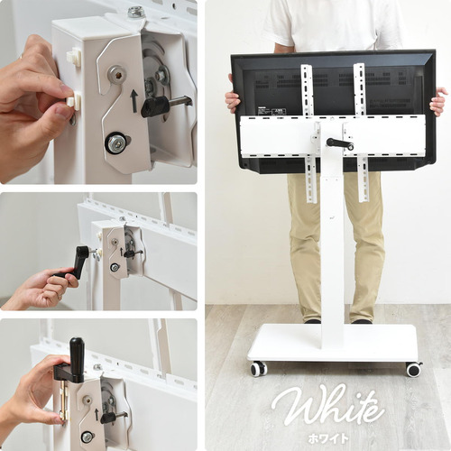 テレビを取り外す必要無し!昇降ハンドルでそのままクルクル高さチェンジ
