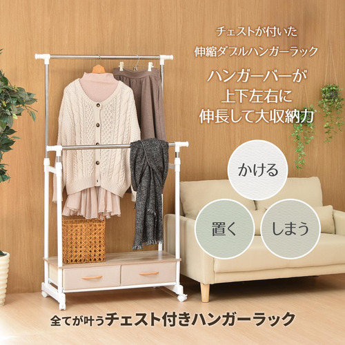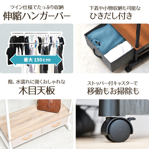 耐荷重:ハンガバー:約20kg(×2) 天板:約15kg 引出し:約5kg(×2)