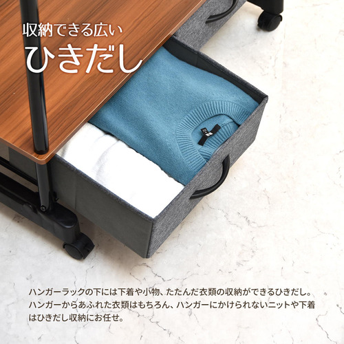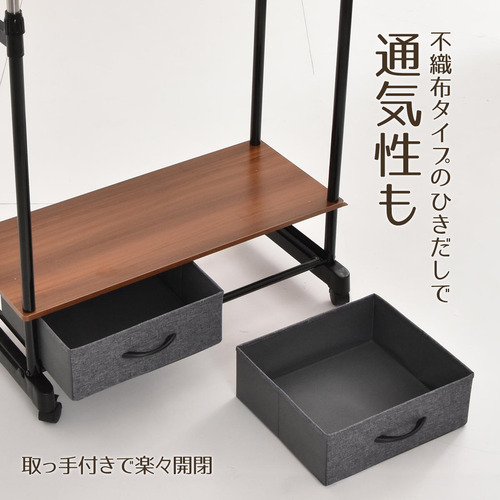 ハンガーラックの下には通気性の良い不織布タイプの引き出し付き