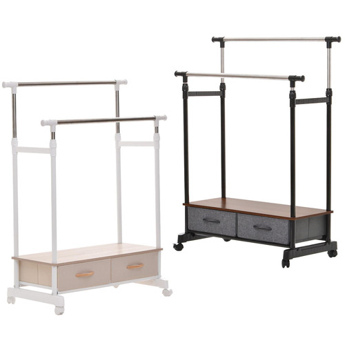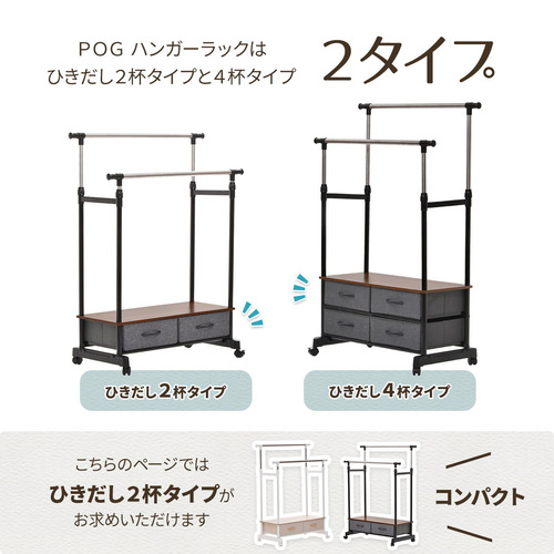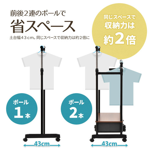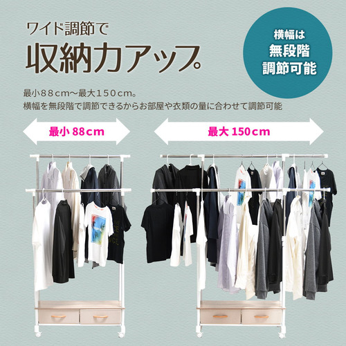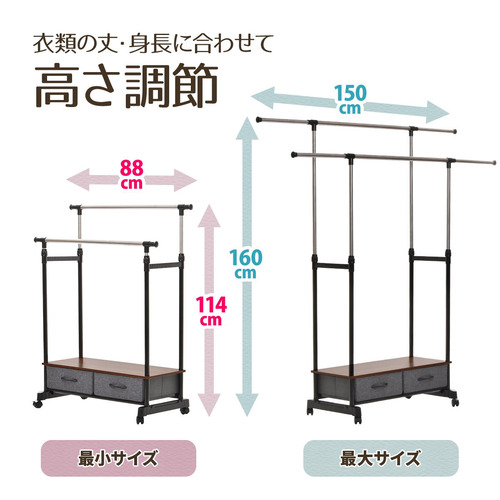 B.Bファニシング LOG 左右上下伸縮ハンガー 引出し2個付き 幅88〜150×奥行43×高さ114〜160cm 耐荷重40kg ブラック LOLS0232KIBLK