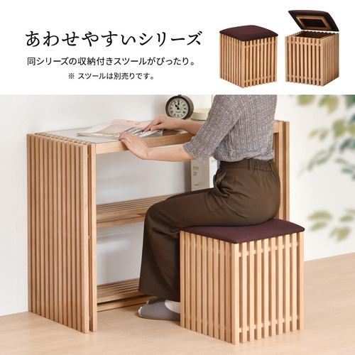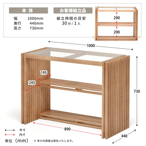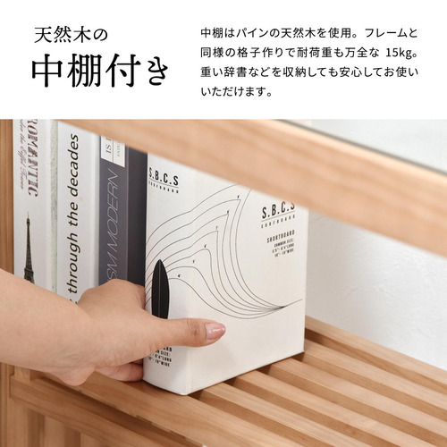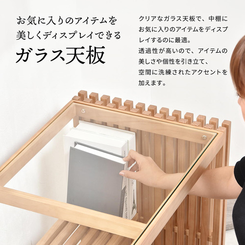 素材:【天板】ガラス 【棚板/側板】パインの天然木(ラッカー塗装)