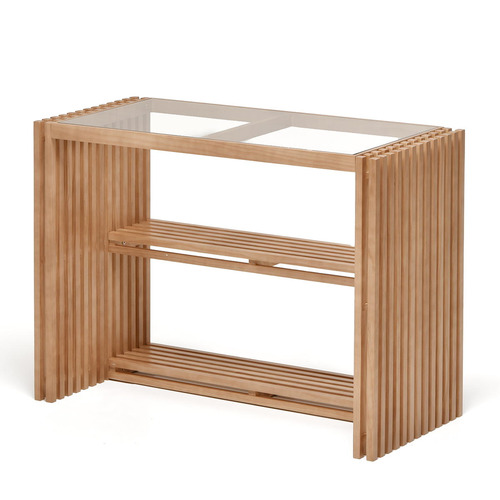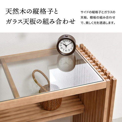 際ぞの縦格子とガラスの天板、棚板の組み合わせで美しく光を透過します。