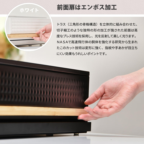 素材:【本体・扉】スチール(エポキシ粉体塗装) 【取っ手】バンブー集成材(ラッカー塗装)