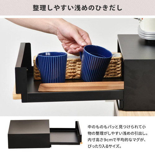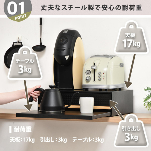 家電下引き出し収納スライドテーブル。レンジや家電周りにひろびろ作業スペースを作って家事効率をアップ。