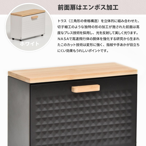 前板にダイヤプレスを施した凹凸のあるデザインと、天然木の天板がおしゃれ