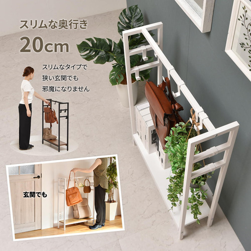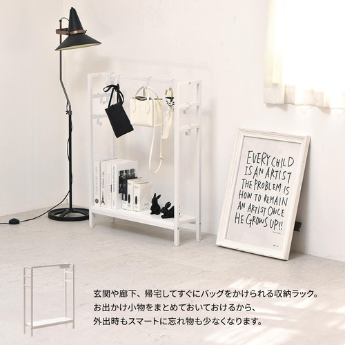 玄関、リビングにも置きやすい、スリムなフック付きマルチ収納ラック。