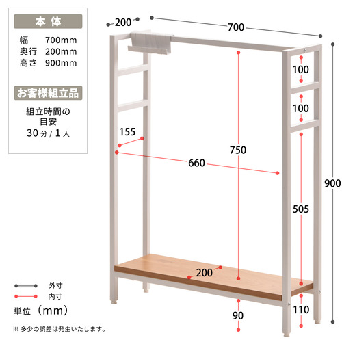 素材:【棚板】中質繊維板にメラミン貼り 【脚/フック】スチールパイプ(粉体塗装)