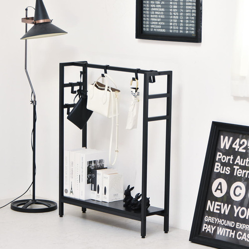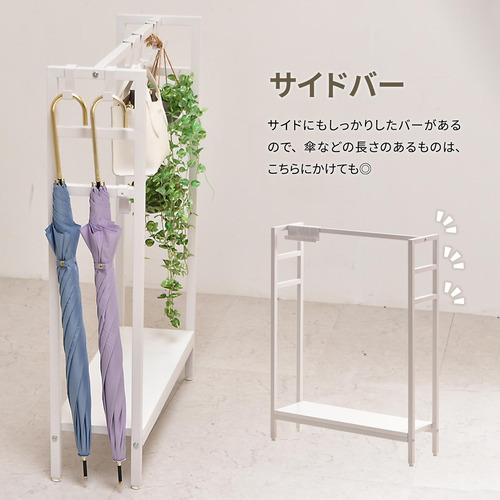 玄関、リビングにも置きやすい、スリムなフック付きマルチ収納ラック。