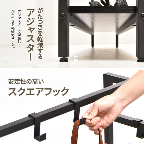B.Bファニシング フック付き マルチ収納 KAKERU 幅70×奥行20×高さ90cm 耐荷重26kg ブラック ONES0253MOBLK