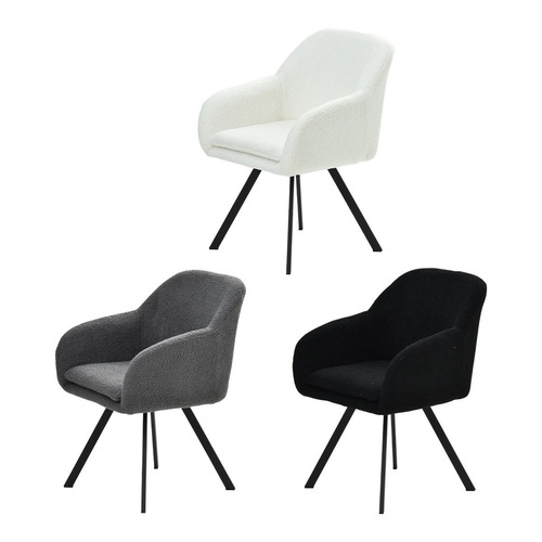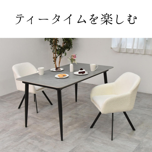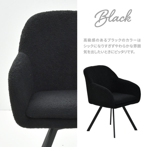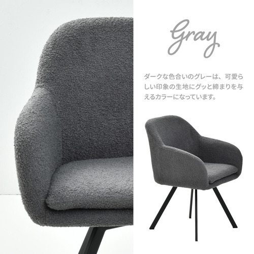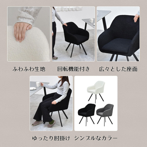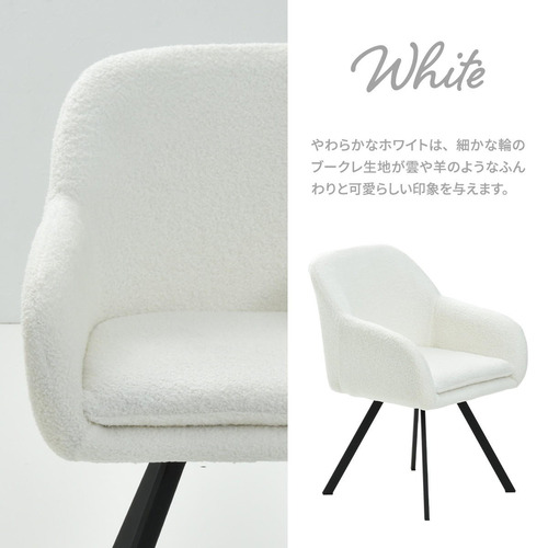 モダンなデザインのブークレ素材の回転機能付きダイニングチェア。