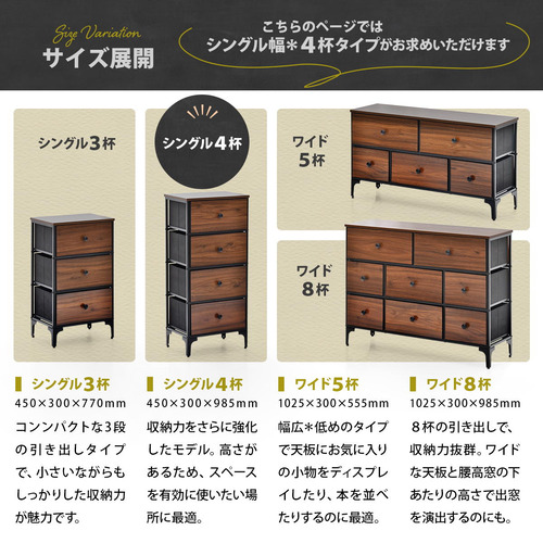 B.Bファニシング ターンチェスト 4段 幅45×奥行30×高さ98.5cm リバーシブル ダークブラウン RVLS0284KIDBR