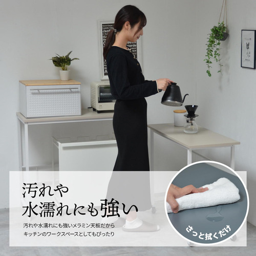 メラミン天板だから、汚れや水濡れにも強く、様々なシーンで対応可能です。