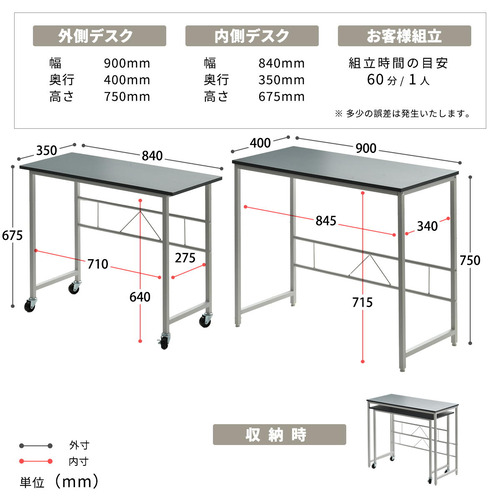商品サイズ:W大:900/小:840×D大:400/小:350×H大:750/小:675mm