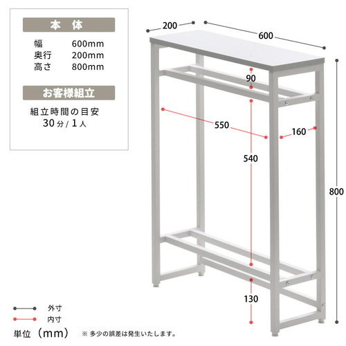 素材:【天板】中質繊維板に両面メラミン貼り 【脚】スチールパイプ(サンド塗装)
