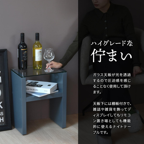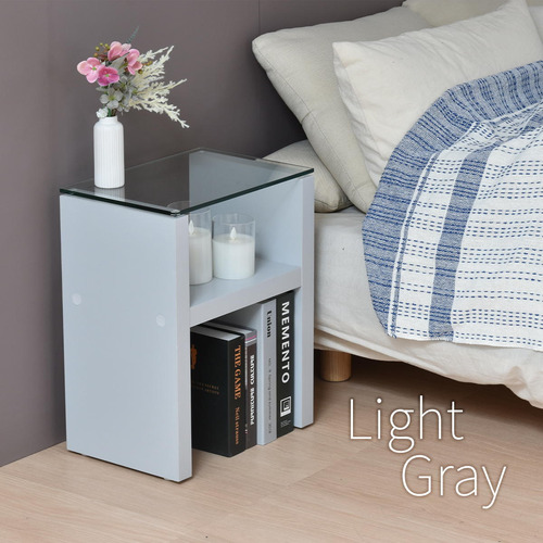 B.Bファニシング Noko ナイトテーブル 幅38×奥行26×高さ48.5cm ガラス天板 ライトグレー NKST0263MOLGY